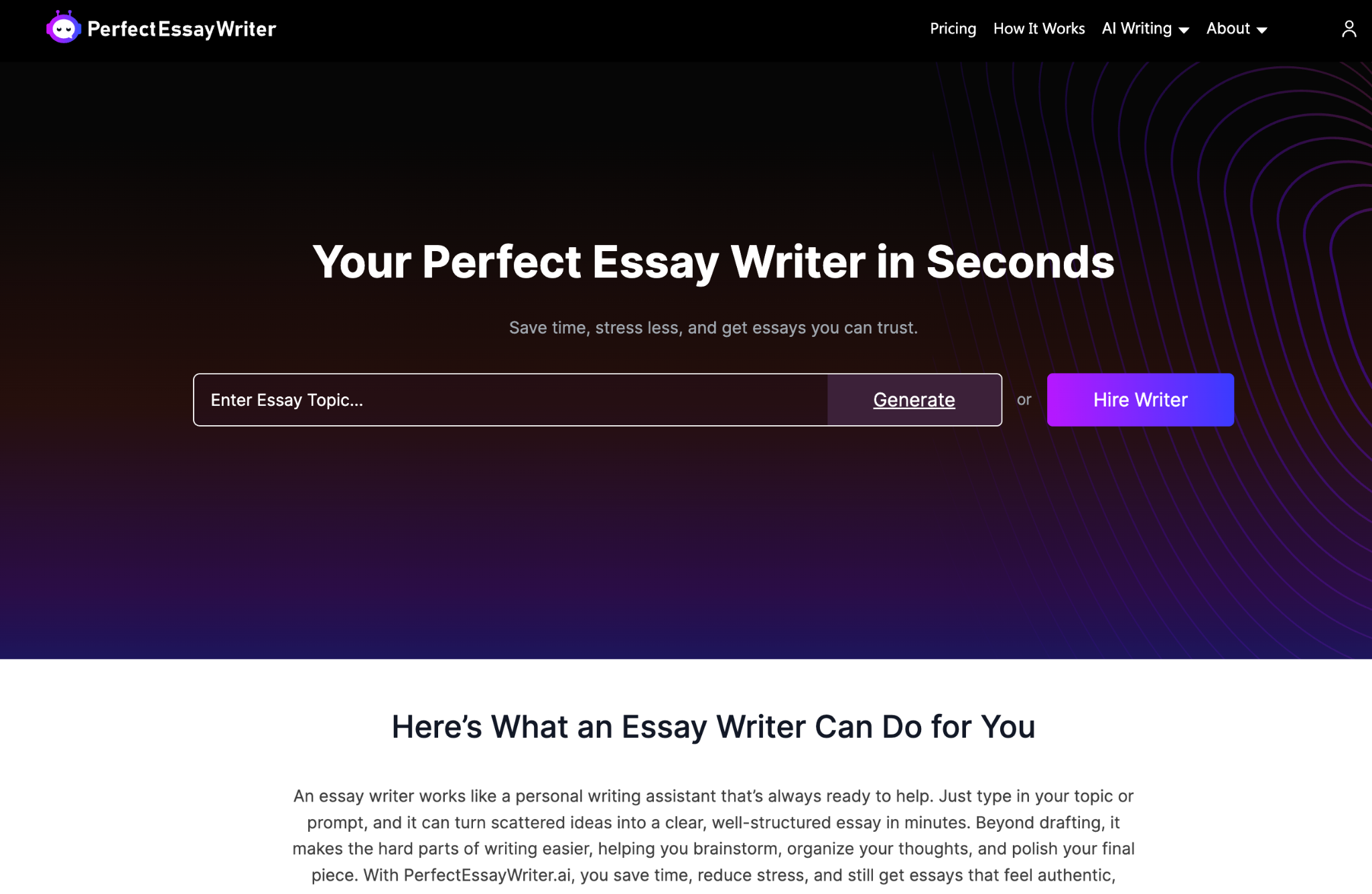 6. PerfectEssayWriter.ai – AI Essay Tool Focused on Academic Structure