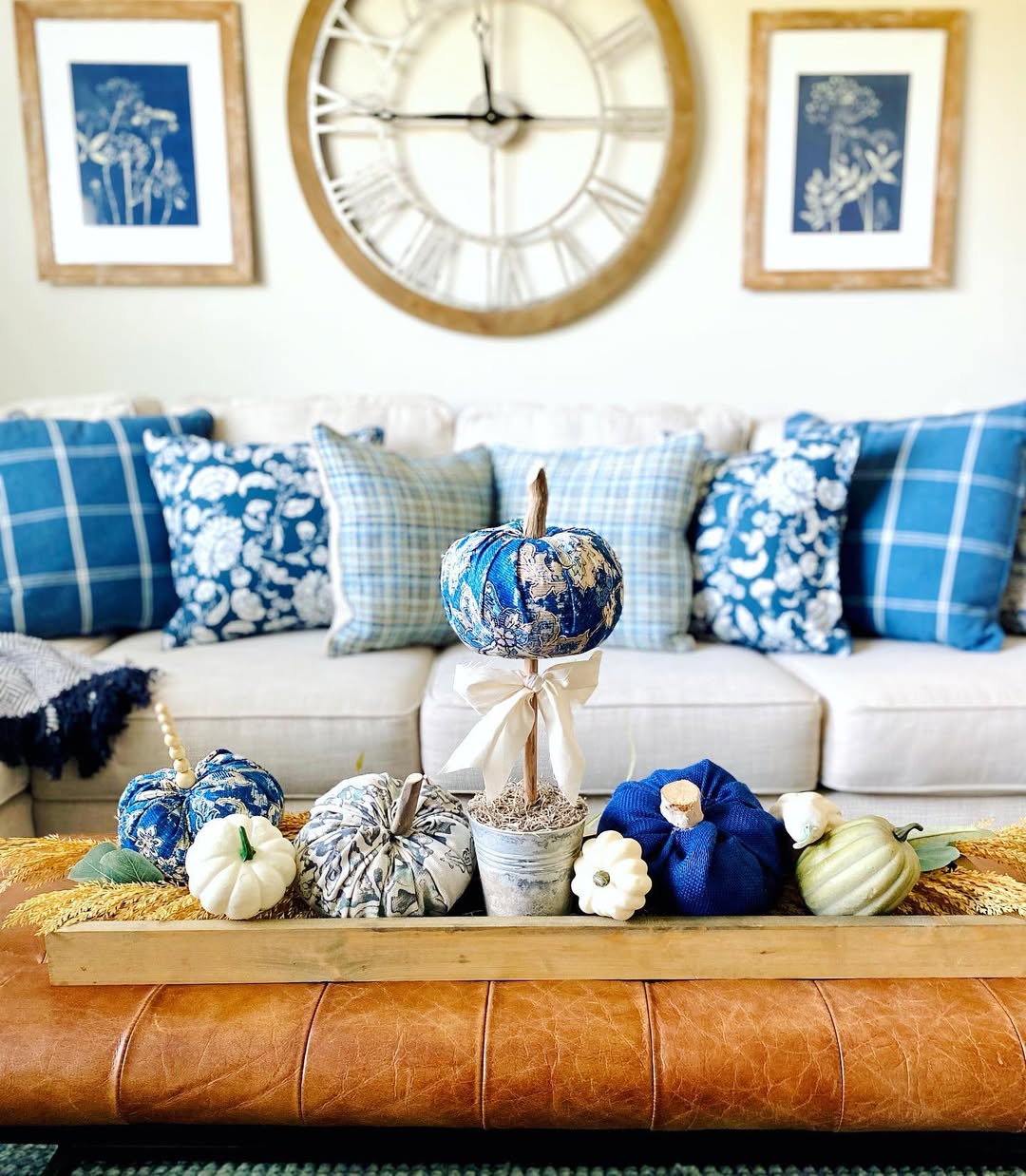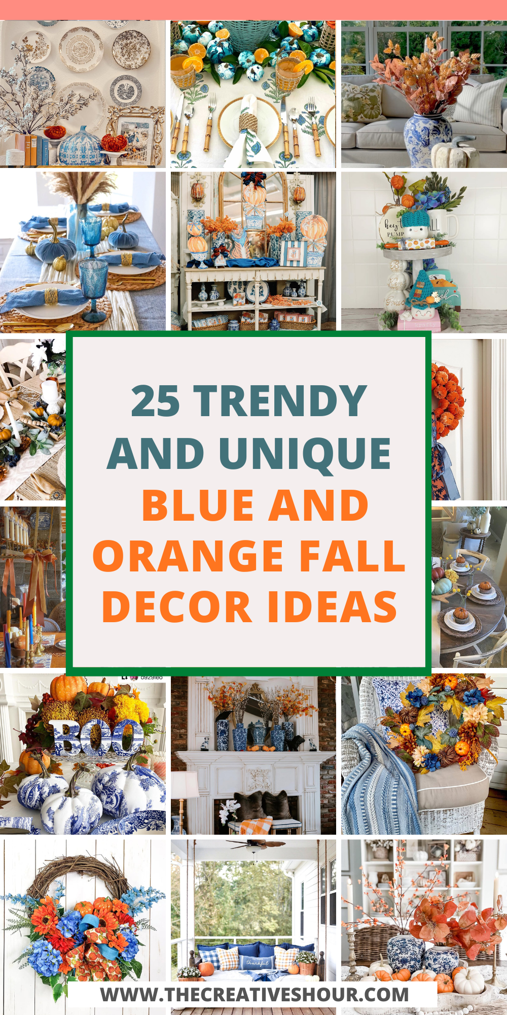 Blue and orange fall décor isn’t just a color trend—it’s a fresh take on seasonal warmth. The cool tones of blue balance the vibrancy of orange, creating depth and sophistication.