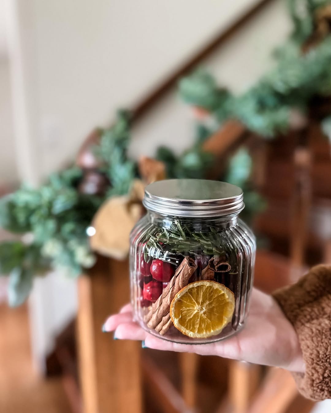 These jars work so well because scent is tied closely to memory. A simple mix of dried citrus, spices, and evergreen can bring back childhood holidays faster than any decoration.