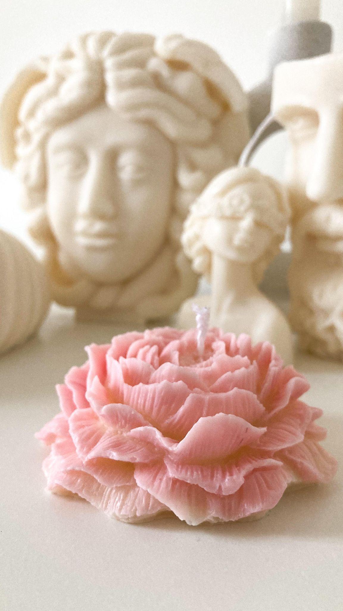 Petal by petal, this handcrafted candle doubles as soft sculpture. The blush pink wax catches light like satin, and the detailing on each fold feels surprisingly lifelike. Style it on a vanity tray or shelf—it holds its own even unlit. Ideal for lovers of romantic décor and impulse buyers at pop-up shops.