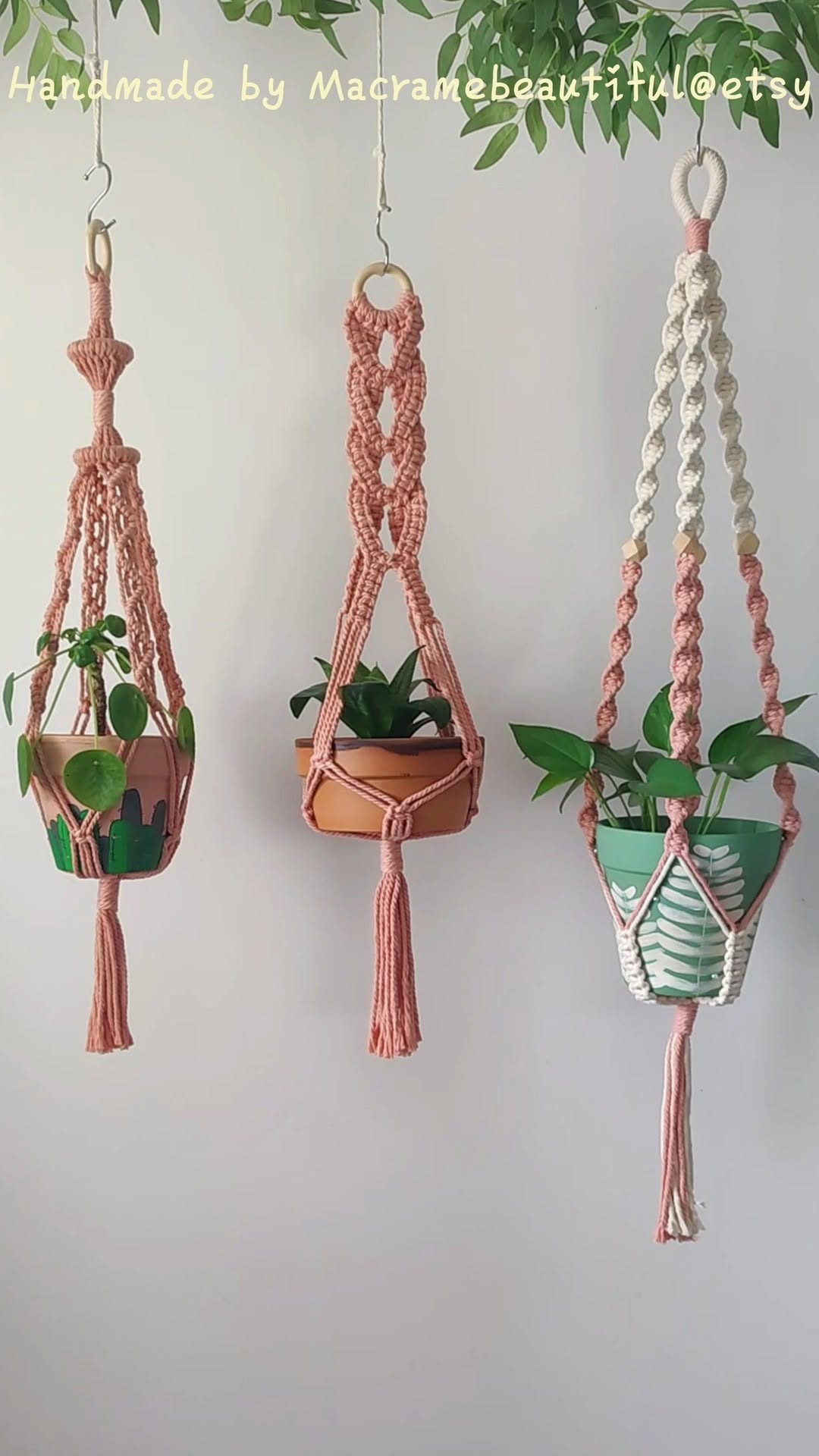 Chunky knots and soft tassels give these macrame plant hangers major texture without stealing the spotlight from your greenery. The dusty pink and cream cords play nice with terracotta and painted pots alike. They’re space-saving, renter-friendly, and just boho enough to work in both modern and vintage setups. A bestseller move for plant lovers with no shelf space left.
