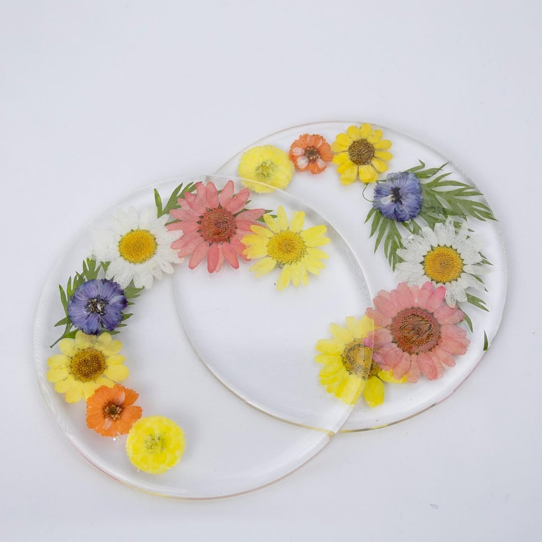 Real pressed flowers, perfectly preserved in crystal-clear resin, turn these coasters into mini botanical displays. The round shape keeps them classic, while the bright petals add a burst of color to any table or tray. Durable enough for daily use, but pretty enough to gift. A go-to for nature lovers, tea drinkers, and brunch hosts alike.