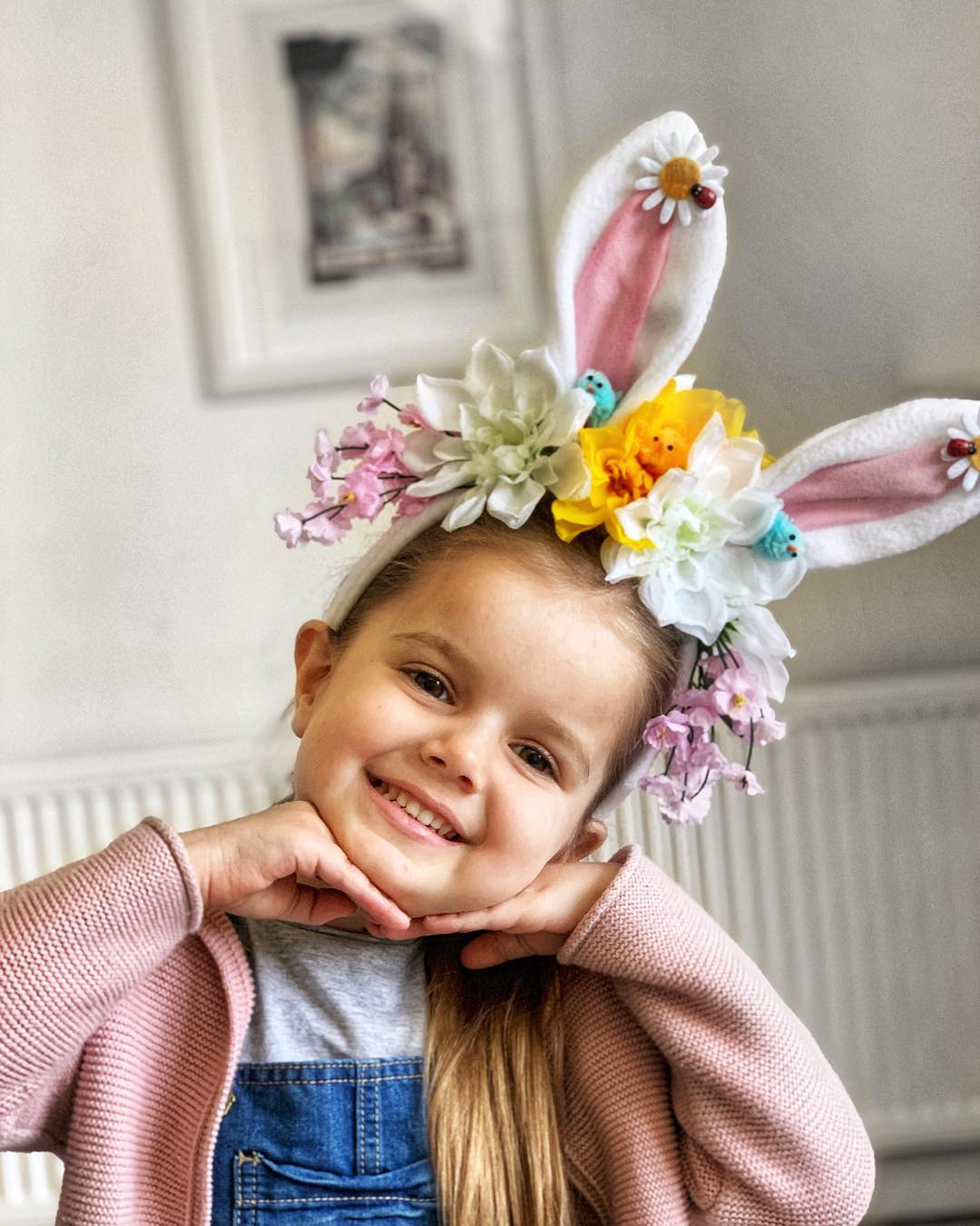 Soft bunny ears turn a simple headband into instant Easter magic. Clusters of spring flowers create a bright crown that frames the ears beautifully. Tiny chicks and ladybugs tucked between the blooms add playful, storybook charm. It’s a sweet, lightweight design kids love wearing to egg hunts and school celebrations.
