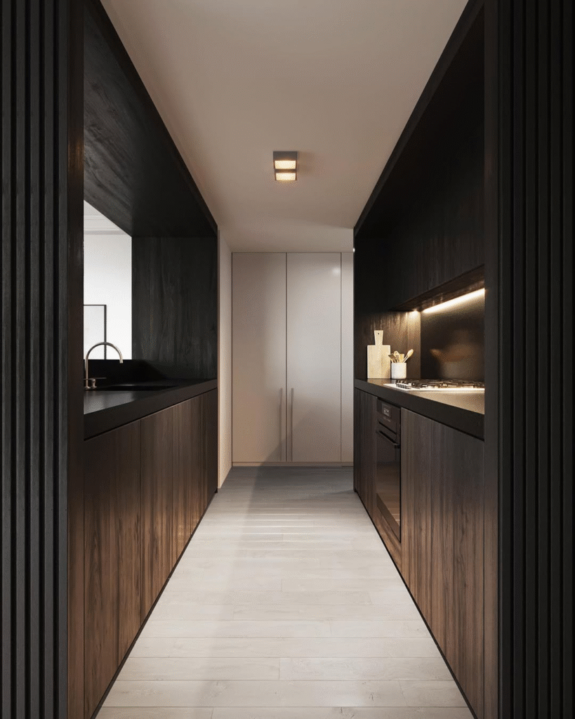 Say goodbye to clutter and hello to Zen-like serenity as you embrace the art of simplicity. Minimalistic galley kitchens are all about decluttering your mind and your countertops, leaving you with a serene space that’s perfect for whipping up your favorite meals.