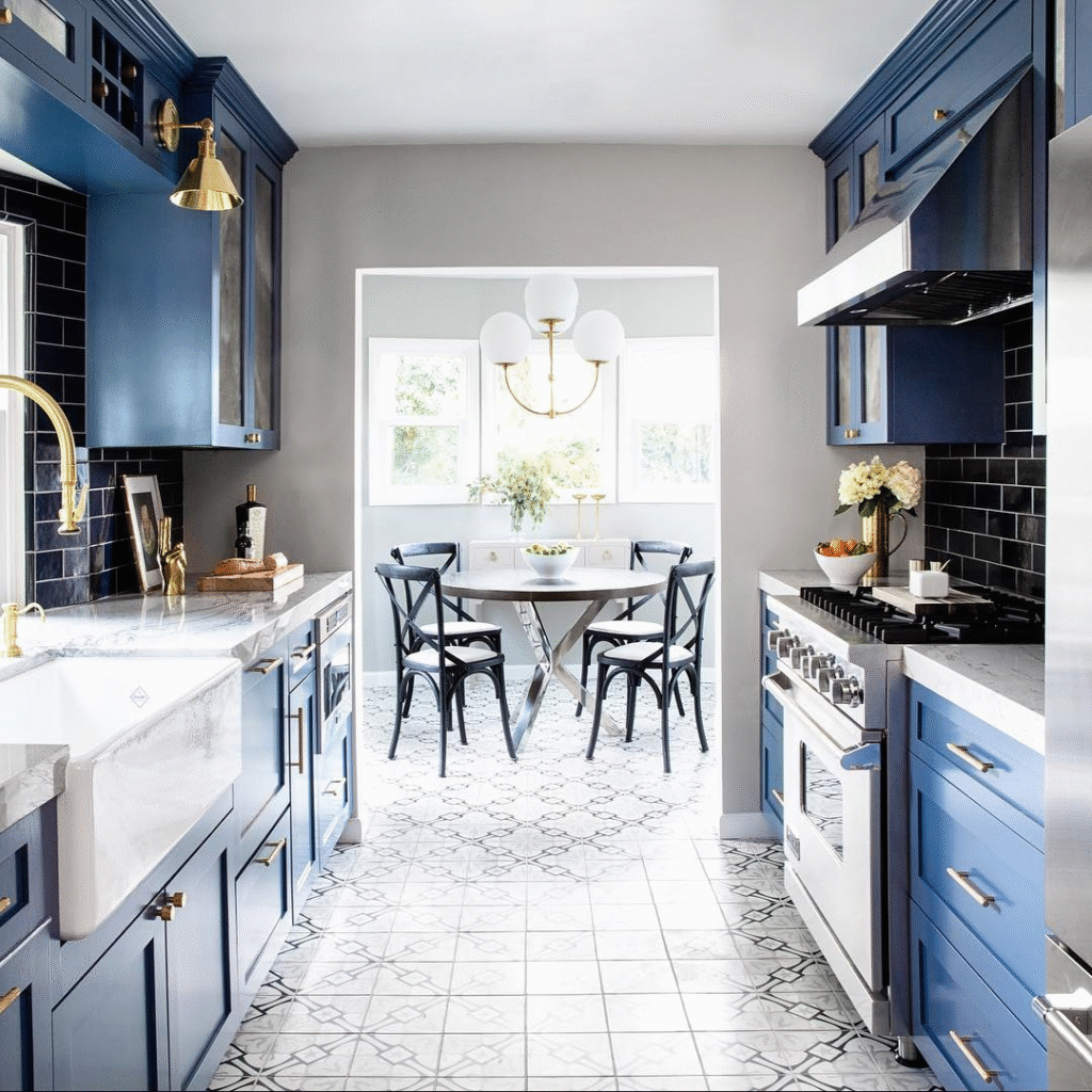 28. Galley Kitchen Design Ideas With Denim Blue Cabinets