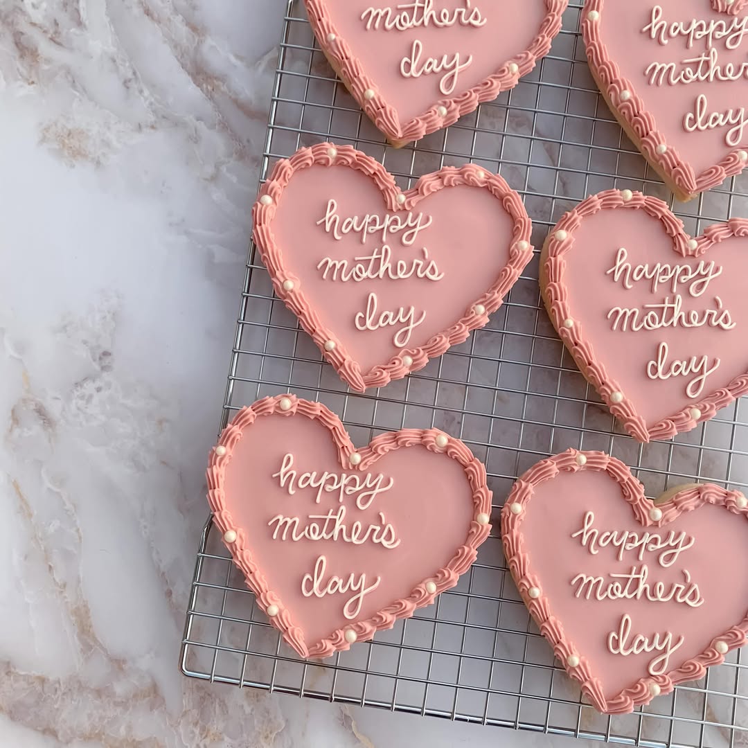 A: Simple icing designs, light piping, sprinkles, or stamped patterns create an elegant look without being time-consuming. Adding messages like “Mom” or “Happy Mother’s Day” makes them feel personal. Keeping the design clean helps the cookies look professional.