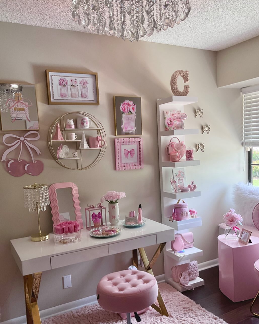 Q: What furniture pieces work best in a pink coquette beauty room?