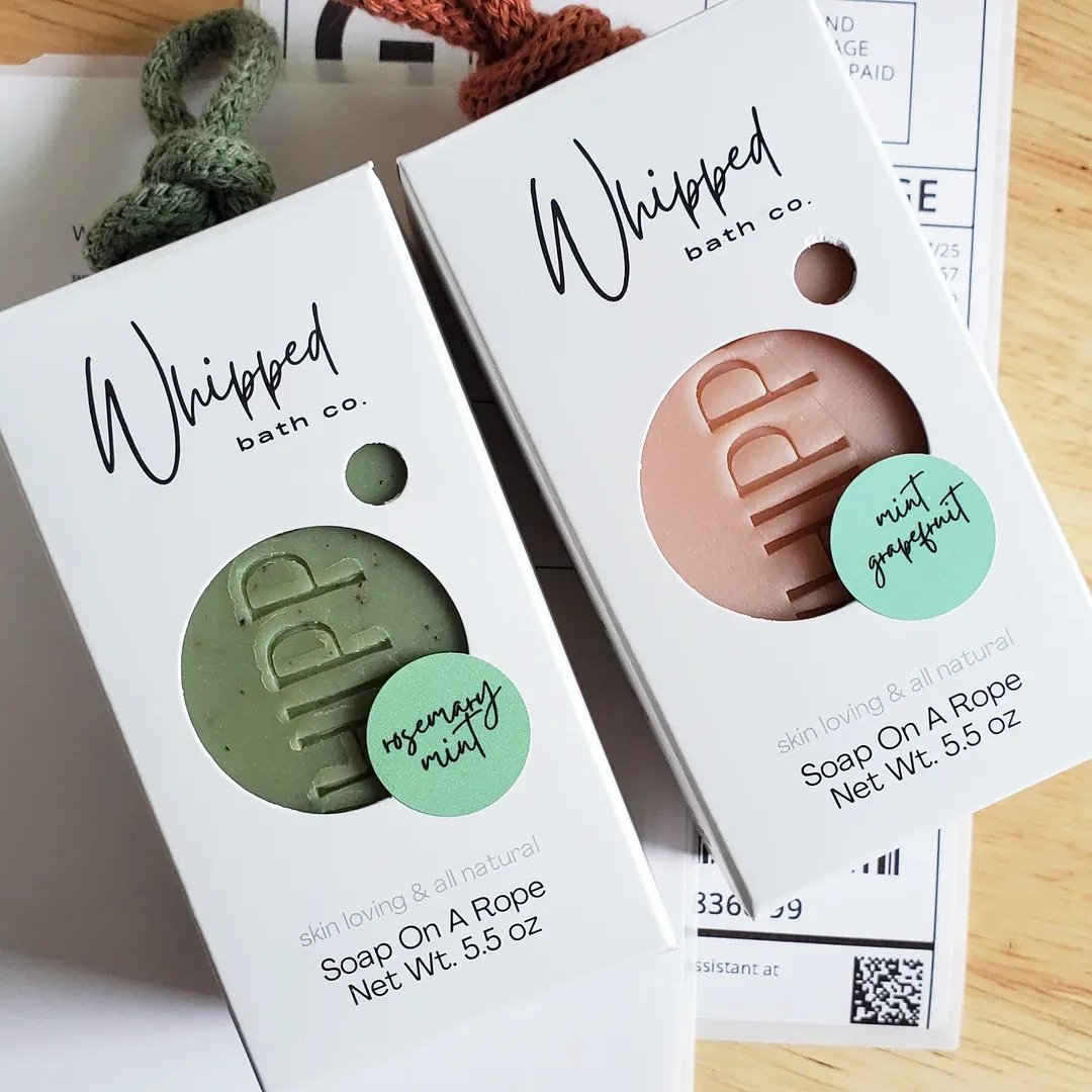Skip the dish—these soaps come ready to hang. A chunky knit loop turns each bar into bathroom decor, ideal for small showers or zero-clutter fans. The die-cut window gives a peek at the soap’s soft tones and stamped branding, while the handwritten scent stickers add a boutique feel. It’s playful, practical, and totally giftable.