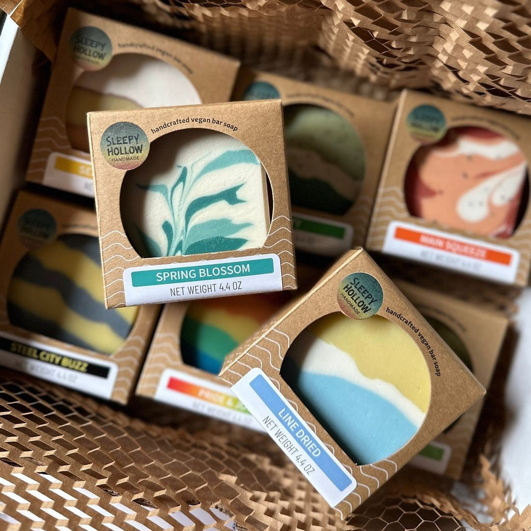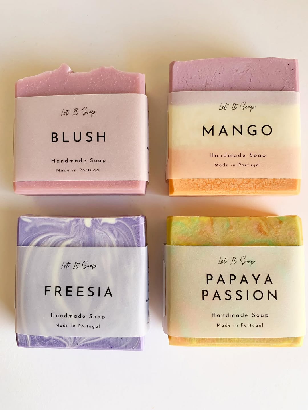 Think kraft sleeves, stamped muslin bags, or minimal boxes with clear scent descriptions. After all, if your soap looks this good on the outside, who can resist finding out how it feels on the inside?