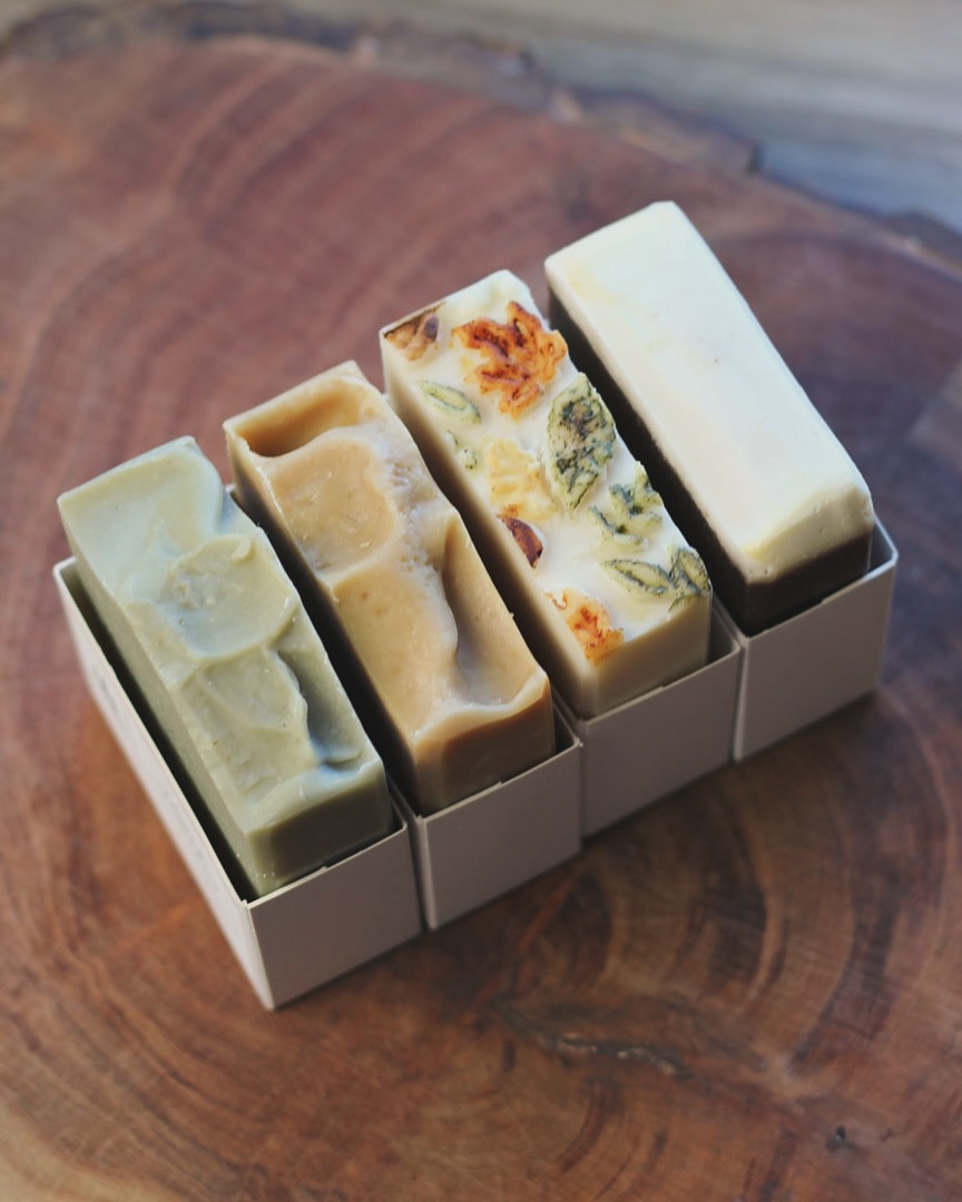 Textural tops, botanical embeds, and a snug open-face box show off the soaps exactly as they are—raw and beautiful. No plastic, no fuss, just a tight square base that keeps things neat while letting the organic shapes breathe. Each bar looks like it was poured with purpose and sliced by hand.