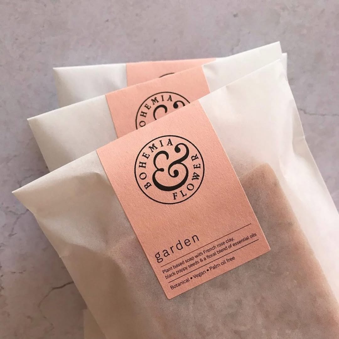 Peach-toned labels and translucent paper wraps let the texture of the soap peek through, keeping the look organic and fuss-free. A bold ampersand gives the branding just enough personality without overdoing it. Earthy, minimal, and quietly chic—exactly what you’d expect from a brand named Bohemia & Flower.