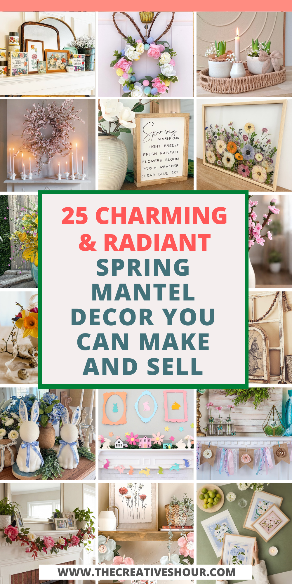 Spring mantel decor you can make and sell works best when it feels fresh and easy to style. Think layered frames, pastel garlands, small wreaths, or minimal bunny and floral accents.