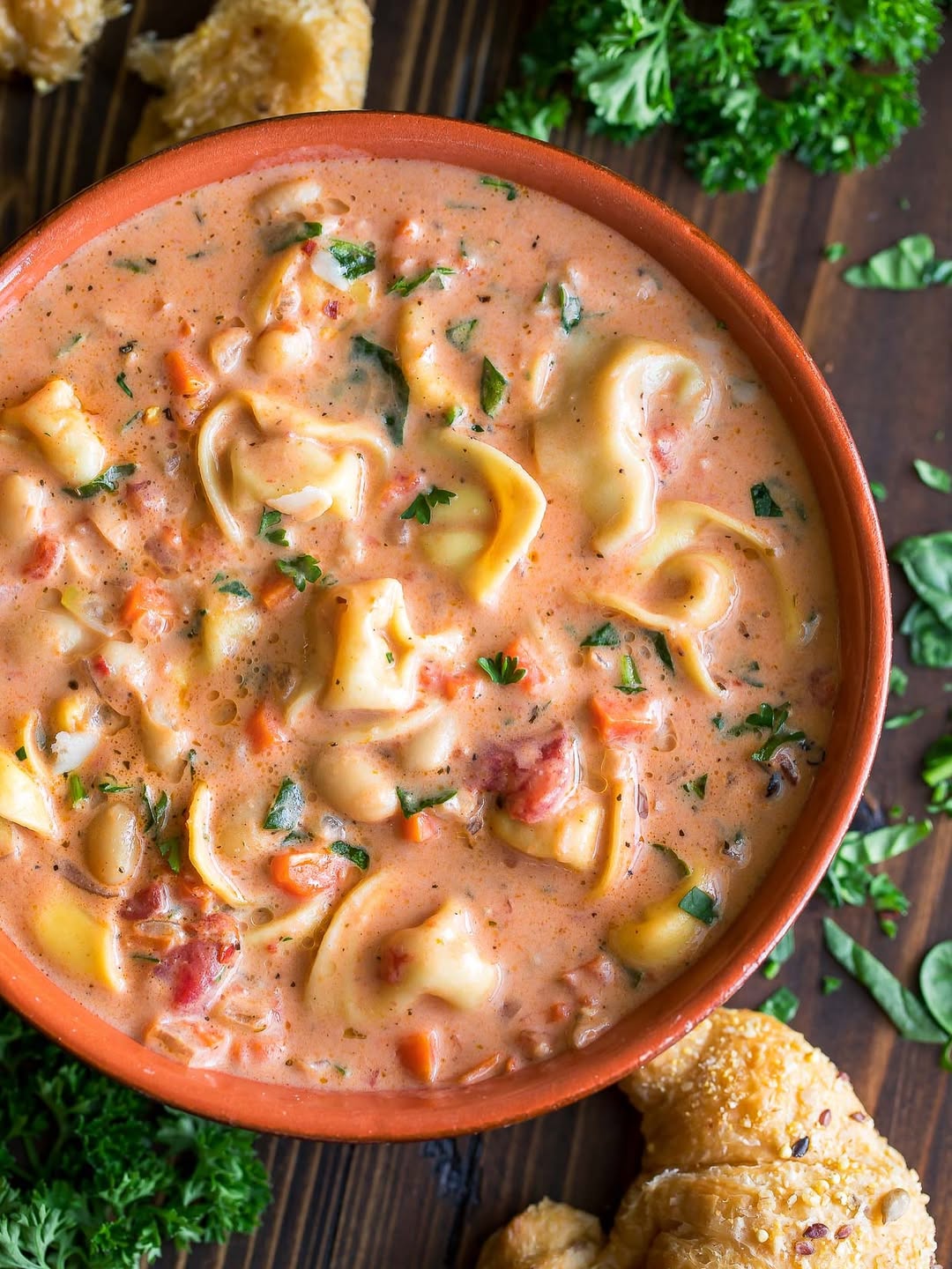 Cheese-filled tortellini turns this into a full meal, not just a starter. The creamy tomato base leans rich, but still feels balanced with herbs and veggies. White beans add extra body without stealing attention. It’s cozy, indulgent, and dangerously easy to go back for seconds.