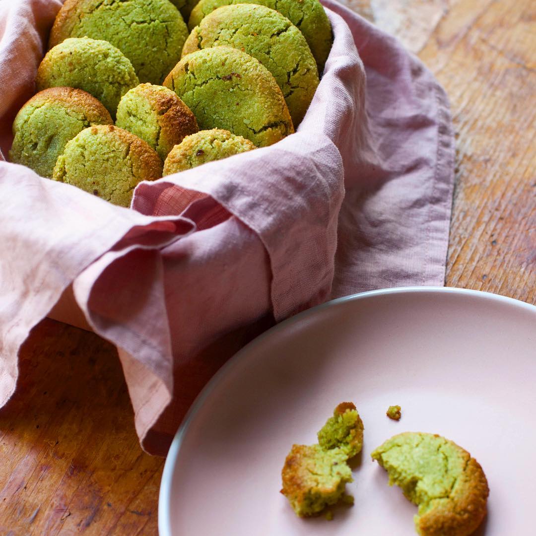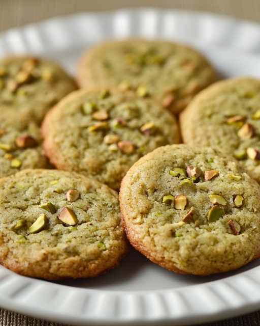 Finely ground pistachios tint the dough a soft, natural green. The buttery base spreads into delicate, crisp-edged rounds. Chopped pistachio pieces pressed on top add texture and a toasty finish. They’re simple, elegant, and quietly addictive.