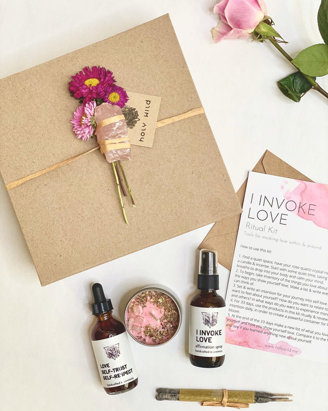A self-care kit like this is peak Valentine’s gifting—thoughtful, calming, and customizable. Rose quartz, floral candles, affirmation sprays, and tinctures create a ritual vibe that feels both personal and luxe. The kraft box and pressed flower detail give it a handmade soul. Business tip: offer themed variations—self-love, couple’s care, or relaxation—for different markets.