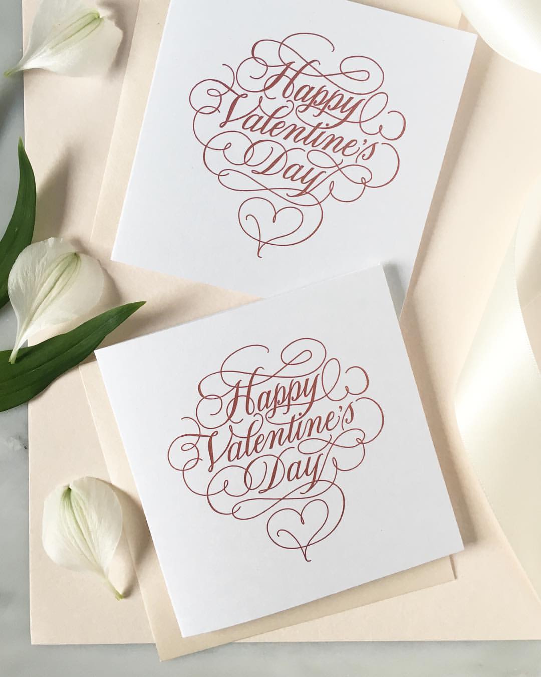 Hand-lettered Valentine’s cards bring back the art of romance—one swoosh at a time. The elegant calligraphy here turns a simple message into something keepsake-worthy. Printed or handwritten, the charm lies in the swirls and flourishes that feel both vintage and luxe. A business win: offer custom names or short notes for that extra personal touch.
