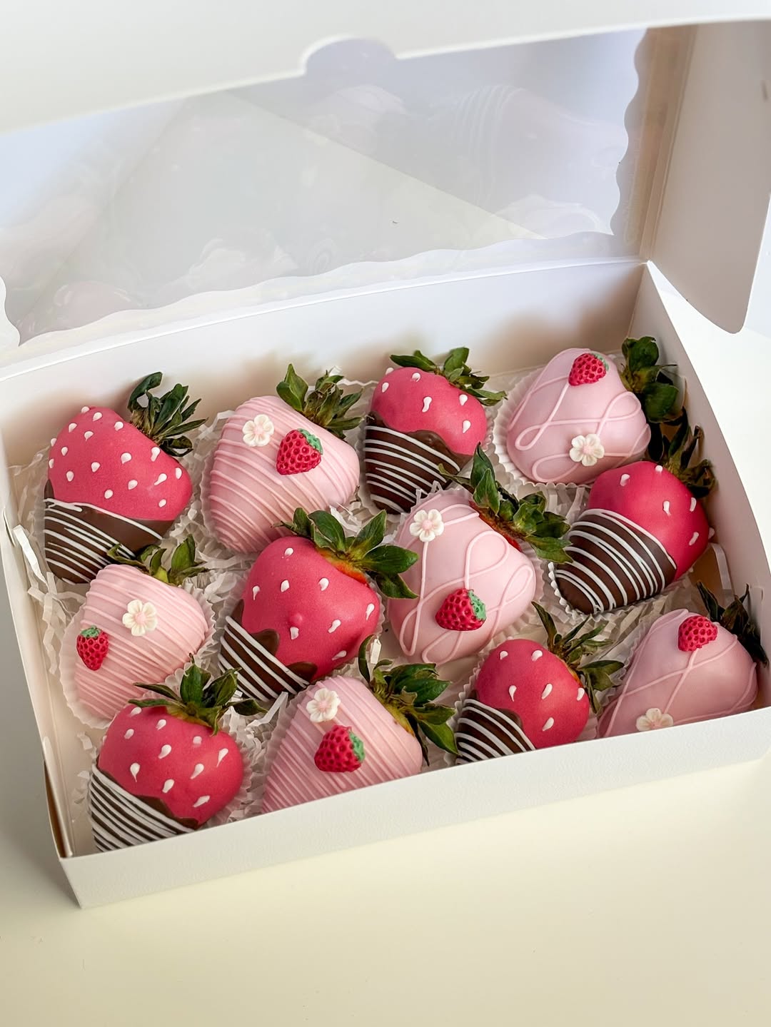 Chocolate-covered strawberries are the ultimate Valentine’s classic—easy to make, stunning to sell. Pink, red, and dark chocolate coatings get dressed up with drizzle, mini flowers, and tiny berry details for extra charm. Packed in a crisp white box, they look like boutique desserts straight from a pâtisserie. Perfect for gifting, catering, or small-batch orders around February 14th.