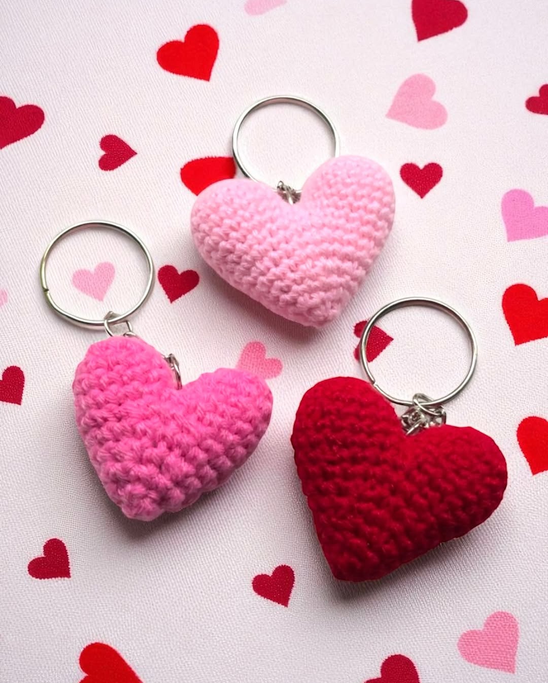 Crochet heart keychains are the kind of cute that people impulse-buy without regret. Small, squishy, and endlessly giftable, they’re beginner-friendly to make but pack serious charm. Stick to classic Valentine shades—bubblegum pink, candy red, soft blush—for maximum seasonal appeal. Pro move: personalize with initials or tiny tags to boost their market value.