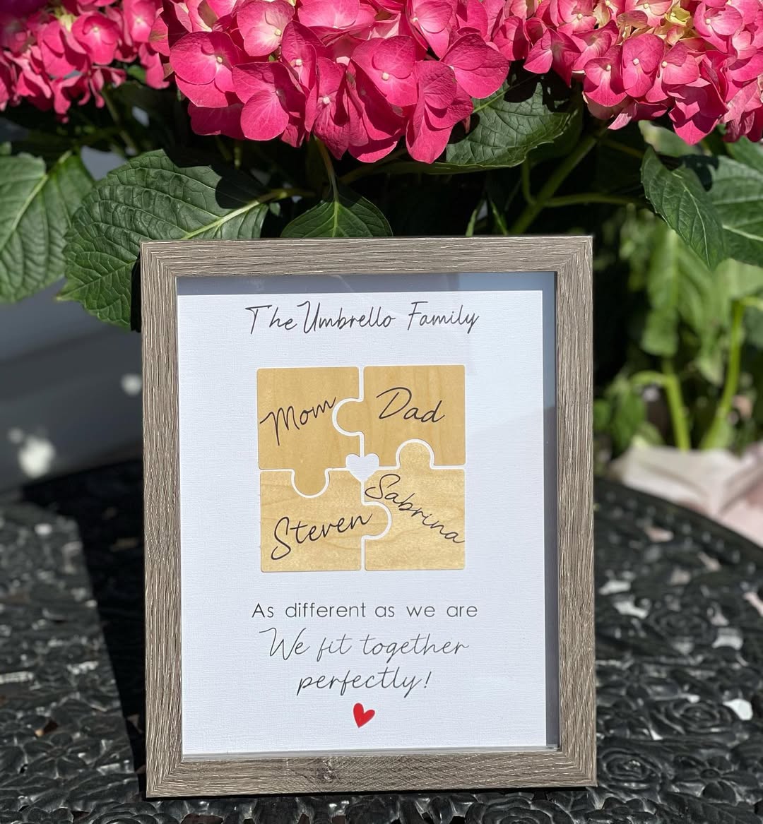 Personalized puzzle art brings all the cozy feels in a single frame. Each wooden piece is engraved with a family member’s name, snapping together in a way that’s sweet and symbolic. The clean type and heart detail keep things modern, not mushy. Makes a thoughtful gift for parents, anniversaries, or blended families.
