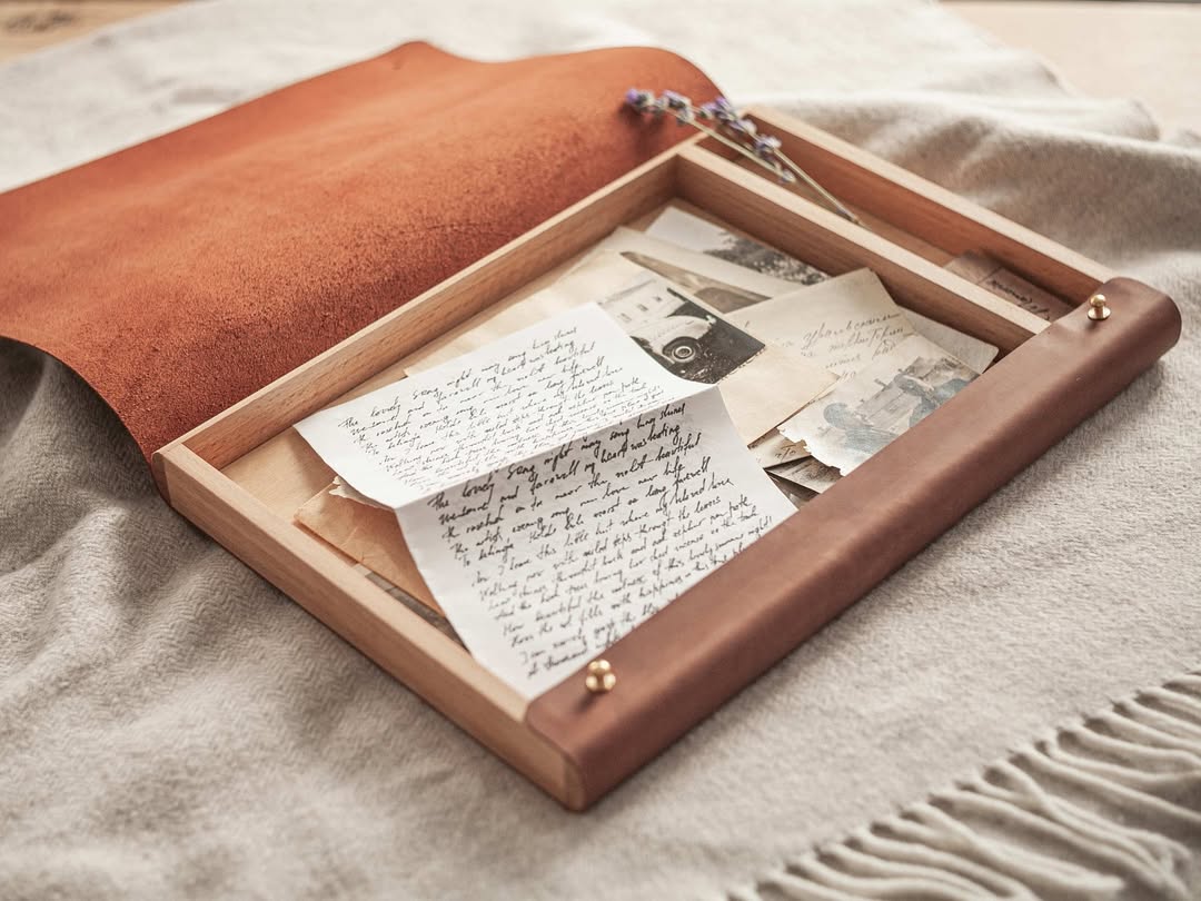 Soft leather, warm wood, and tiny brass details make this keepsake box feel like a hug in object form. Inside, there’s room for love notes, photos, and timeworn treasures you’re not ready to let go of. The fold-over flap adds an old-world touch, without feeling overly precious. More than storage—it’s a quiet little ritual.
