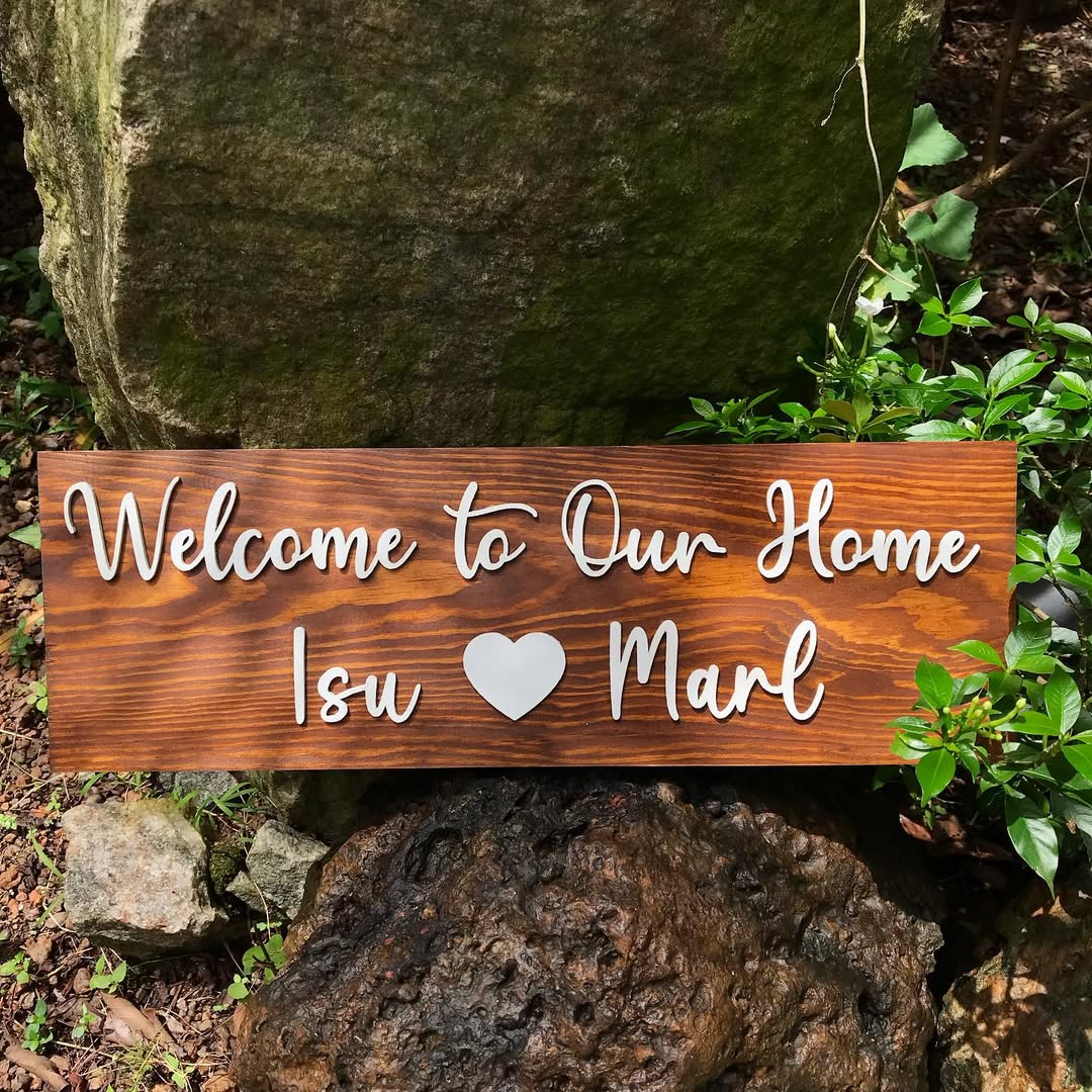 Warm wood grain and layered lettering give this custom name sign standout curb appeal. The combo of script font and bold cutouts adds depth, while the heart detail keeps it sweet without being cheesy. Whether it hangs by the door or sits in a garden nook, it quietly says “you’re home.”