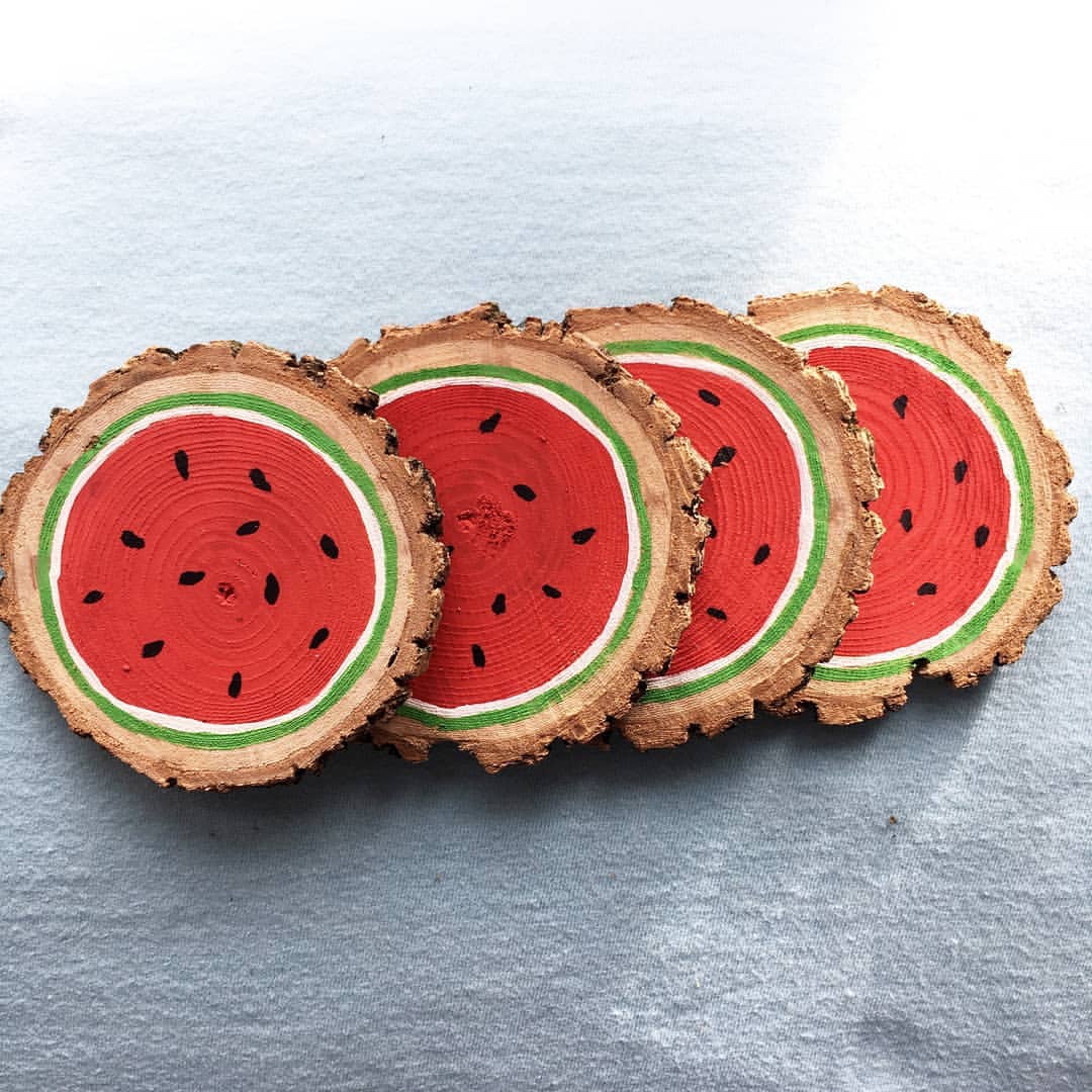 Hand-painted to mimic juicy watermelon slices, these wood slice coasters are pure sunshine for your surfaces. The bark edges keep things rustic, while the bold colors bring in a playful, picnic-ready vibe. They’re conversation starters and cup protectors—basically multitaskers in disguise. Ideal for gifting or brightening up a bar cart.
